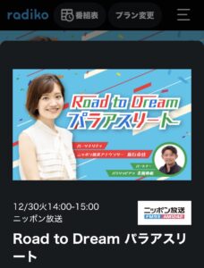 12月30日(火)14:00〜15:00「Road to Dreamパラアスリート」に弊社理事の岩村宇博が出演しました!radikoでいつでも聴くことができます。 ボッチャの魅力を発信しました。 Screenshotシェアする